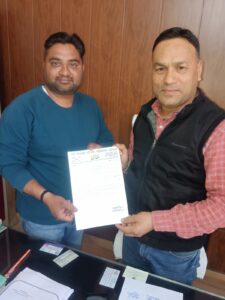 जल संस्थान के अवर अभियंता को पानी की नई पाइपलाइन! बिछाने के लिए दिया ज्ञापन -सभा सद प्रतिनिधि अमित सैनी
