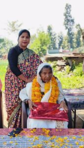 रानीपोखरी – (चमन लाल / भारत गुप्ता )अंतरराष्ट्रीय महिला दिवस पर बडासी ग्रांट में जिला अध्यक्ष कांग्रेस सेवादल रेनू चुनारा ने 95 वर्षीय पूरण दाई को सम्मानित किया गया । उन्होंने बडासी ग्रांट की दाई माँ का कार्य बडे ही कुशलता पूर्वक किया पहले हाॅस्पिटल नजदीक ना होने के कारण घर पर ही गभऀवती महिलाओं की सरल एवं सामान्य डिलीवरी करवाई अब पूरण दाई की उम्र 95 वर्ष हो गई है 70 वर्षों से महिलाओं की निस्वार्थ सेवा करती आई है।