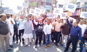 व्यापारियों ने रैली निकालकर किया विरोध प्रदर्शन