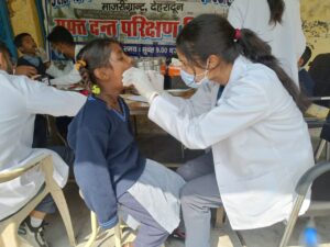 डोईवाला – (भारत गुप्ता ,चमन लाल)उत्तरांचल डेंटल एंड मेडिकल रिसर्च इंस्टीट्यूट माजरी ग्रांट की ओर वार्ड 10 भानियावाला पंचायत घर में निशुल्क दंत शिविर आयोजित किया गया! शिविर मे 60 लोगों ने अपने दांतों की जांच करवाई! वार्ड सभासद ईश्वर रोथान ने शिविर का शुभारंभ करते हुए कहा कि अस्पताल द्वारा निशुल्क दंत शिविर लगाकर बहुत ही सराहनीय कार्य किया है!