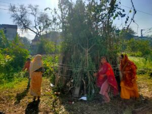 पूजन के दौरान महिलाओं ने मंगल गीत गाकर गोबरों से बने हुए बिडकुले और उपलो को डालकर पूजन किया! पूजा करने आई कविता गुप्ता और राधा ने बताया कि होली बुराई पर अच्छाई की जीत का प्रतीक है! वे अपने बच्चों की लंबाई आयु के लिए होलिका माता से प्रार्थना करती है रंगों के इस त्यौहार में आपसी भाईचारा को बढ़ावा मिलता है! मान्यता है कि भारत में फसल आने पर उत्सव मनाने की परंपरा है! होली के समय खास तौर पर गेहूं की फसल पक जाती है! भारतीय संस्कृति के मुताबिक हमें जो वस्तु प्राप्त होती है उसमें से कुछ भाग भगवान को अर्पित किया जाता है नई फसल आने पर जलती हुई होली में अन्न अर्पित किया जाता है! इस मौके पर चमेली देवी, अनीता गुप्ता, कविता मनवाल , चंद्रकांता वर्मा, रेखा कौशल, गौरी वर्मा, उमा गुप्ता आदि मौजूद रही!