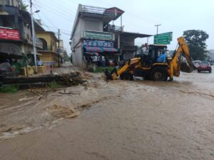 वहीं दूसरी और रानीपोखरी के भोगपुर स्थित दावड़ा क्षेत्र में महादेव खाले में पानी का स्तर बढ़ने से बाढ़ जैसे हालात बन गए। इस दौरान बंद पड़ी कई दुकानों में पानी घुसा स्थानीय निवासी रवि चौहान, सुनील सैनी, पंकज बूटोला, मोंटू आदि स्थानीय लोगों ने बताया कि जंगलों से जो बरसात का पानी नहर में आने से पानी ओवरफ्लो हो जाता है। पानी की निकासी के लिए अगर बड़ी पुलिया बनी होती तो दिक्कतों का सामना आमजन को नहीं करना पड़ता। बहरहाल अब सिंचाई विभागओर वन विभाग को कोई ठोस निर्णय लेना पड़ेगा।