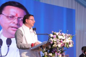 मुख्य अतिथि मुख्यमंत्री पुष्कर सिंह धामी ने अपने ओजस्वी उद्बोधन में कहा “लेखक गाँव डॉ. निशंक जी का ऐसा अभिनव प्रयास है।