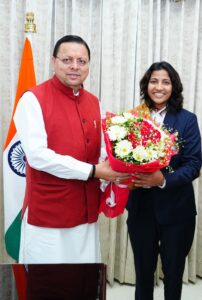 मुख्यमंत्री श्री पुष्कर सिंह धामी से आज शासकीय आवास में महिला क्रिकेट विश्व कप विजेता टीम की सदस्य एवं उत्तराखण्ड की गौरव, क्रिकेटर स्नेह राणा ने शिष्टाचार भेंट की।