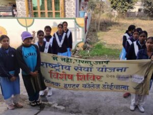 डोईवाला, पब्लिक इंटर कॉलेज के राष्ट्रीय सेवा योजना शिविर के तीसरे दिन स्वयंसेवियों ने पर्यावरण एवं स्वच्छता रैली निकालकर लोगों को पर्यावरण को स्वच्छ रखने का संदेश दिया। आर्य समाज मंदिर जॉली ग्रांट में सात दिवसीय एनएसएस शिविर के तीसरे दिन स्वयंसेवियों ने गांव में जन जागरूकता रैली निकालकर लोगों को पॉलिथीन का उपयोग न करने एवं पर्यावरण संरक्षण को बढ़ावा देने के लिए पौधा रोपण करने का महत्वपूर्ण संदेश दिया। छात्र-छात्राओं ने घरों का सर्वे करके नशा मुक्ति का संदेश भी लोगों तक पहुंचाने का काम किया। कार्यक्रम अधिकारी पूजा जोशी ने बताया कि शिविर में स्वयंसेवियों को विभिन्न क्रियाकलापों के माध्यम से शरीर को स्वस्थ रखना जिसमें योगा, मेडिटेशन सिखाया जा रहा है साथ ही उन्हें सामाजिक जिम्मेदारियां का बोध कराने के लिए उन्हें सर्वे के लिए फील्ड में भी भेजा गया हैव शिविर में शिक्षक सुदेश सहगल राधा गुप्ता चारू वर्मा के अलावा इशिका, पीयूष, अनस, लक्की, दिव्या, रिया, चाहत, अमान, हिमांशु आदि स्वयंसेवी मौजूद रहे ।
